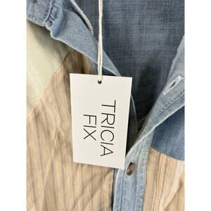 This relaxed and oversized shirt from Tricia Fix features a collared neckline and button-front closure. It has long sleeves with button cuffs and patch pockets. Patches of denim and pinstriped cotton combine to form this crafty button-down. It features a patchwork design, denim and pinstripe fabrications.