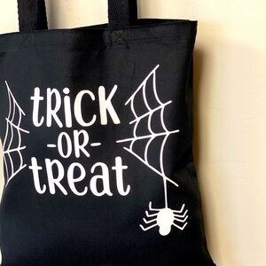 TRICK OR TREAT 🕷🧡 Cotton Canvas Tote Bag in Black~ NEW W/OUT TAGS