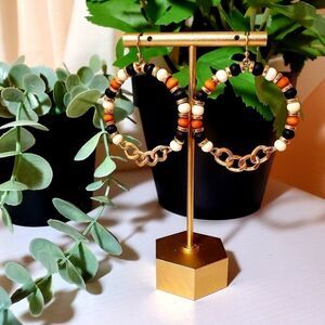 TRI-COLOR Tobarra Bead and Chain Hoop Earrings