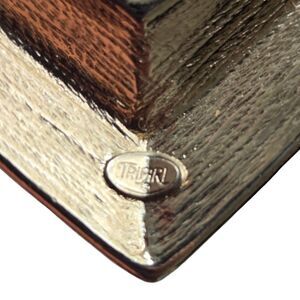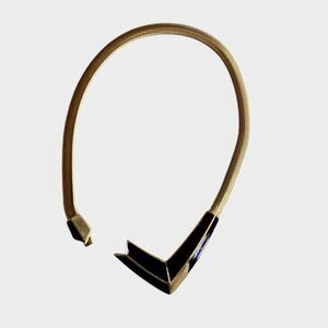 Add a bold statement to your jewelry collection with this black and gold tone Trifari necklace. Featuring a unique collar design, this necklace is perfect for adding a touch of vintage style to any outfit.