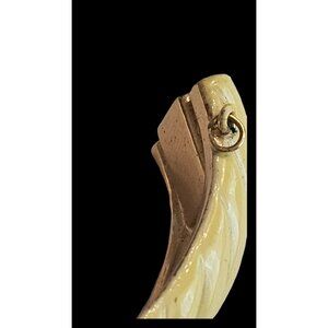 Adorable vintage 1960s TRIFARI canary yellow and gold etched bracelet! Features slanted etching throughout. Hinged closure. Interior is a beautiful gold and is stamped with makers mark inside. Can easily be dressed up or