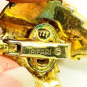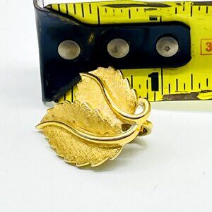 TRIFARI Double Leaf Earrings Clip On Gold Tone Nature Botanical Garden Trees