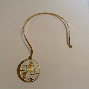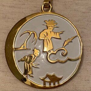 Crown TRIFARI Necklace Gold Plated Collar with White Enamel Asian Ming Happy Couple pendant Vintage 1970s