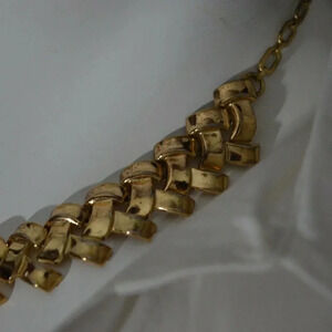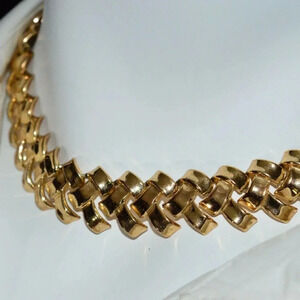 VTG TRIFARI Patent Pending Basket Weave Ribbon Gold Tone Choker Necklace