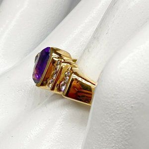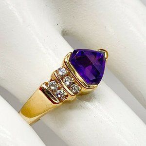 TRILLION CUT AMETHYST DIAMOND RING 18K YELLOW GOLD