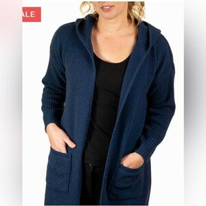 This lush, warm, long line cardi has all the benefits of possum, merino, silk yarn with the addition of a comfortable hood for extra warmth when needed.