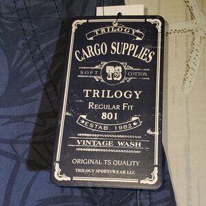 TRILOGY SPORTSWEAR NAVY PALM DESIGN MENS CARGO SHORTS