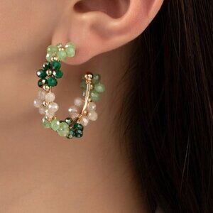 TRINA GREEN BEADED FLOWER HOOP EARRINGS
