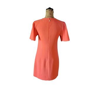 This lightweight coral shift dress offers a chic silhouette with flutter sleeves and a subtle keyhole neckline, suitable for warm weather outings.