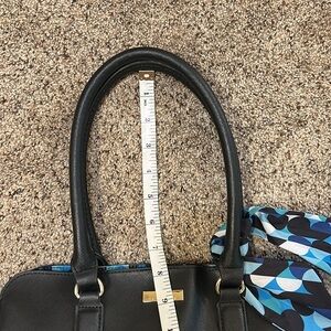 TRINA TURK BLACK VEGAN SHOULDER BAG BLUE BLACK DOT INTERIOR WITH BAG SCARF