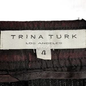TRINA TURK Black Stripe Wide-Leg Cuffed Hem Wool Dress Trousers Size 4