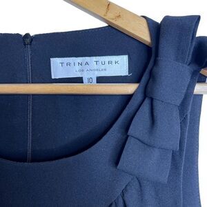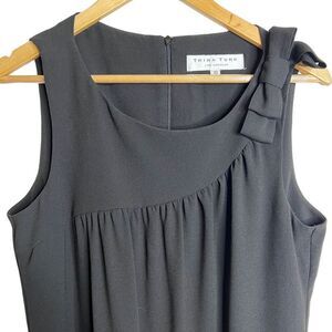 Trina Turk return to their classic, feminine roots with this gorgeous black polyester shift dress. It is perfect to attend any occasion with. It features a black exterior, no sleeves with a small bow on the left shoulder and a back zip closure.