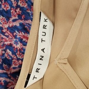 💕TRINA TURK💕 Chiffon Flounce Short Sleeve Blouse Tassels ~ Micro Floral Print