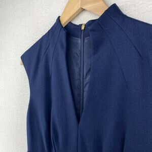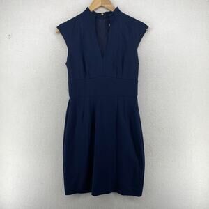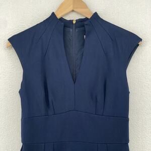 TRINA TURK Dress 4 Sheath Ponte Cap Sleeve Pleated Back Zip Career Stretch Blue