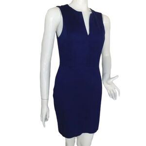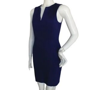 TRINA TURK Dress, XS/2, Navy Blue Sheath, Sleeveless, Split neck, Lace under