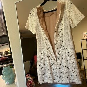 This elegant white eyelet dress is perfect for any occasion. Its intricate design offers a stylish and sophisticated look.