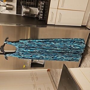 💕TRINA TURK💕 Fern Maxi Dress ~ Ceramic Blue Abstract Print Large L NWT