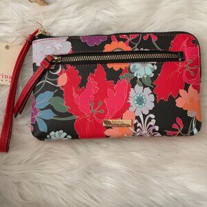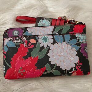 TRINA TURK Floral Printed Wristlet & Card Case Set in Black/Red Multi