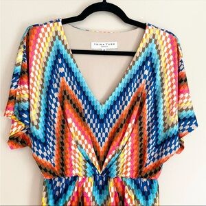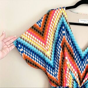 TRINA TURK Geometric Pattern Dolman V-Neck Mini Dress Size 4