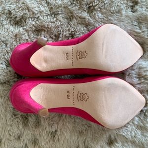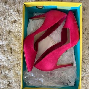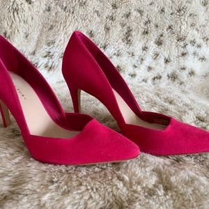 Trina Turk’s Hollywood Pumps have a vivid pink suede outside with beige lining. This style is discontinued and cannot be purchased in store or online anymore.