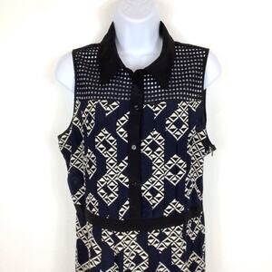 100% silk collared sleeveless shirt dress with mesh inset at shoulders