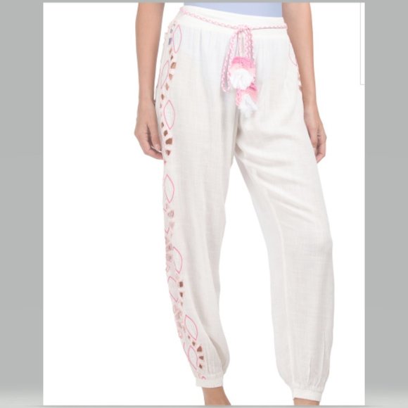 TRINA TURK Lahaina Jogger Cover-up Pants Embroidered Pink and Ivory Size S. NEW WITH TAGS!