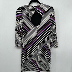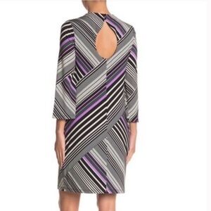 TRINA TURK MERRY Striped stretch open back woman's shift dress. Wear to the office, a special occasion or church. So many options with this stunning dress.