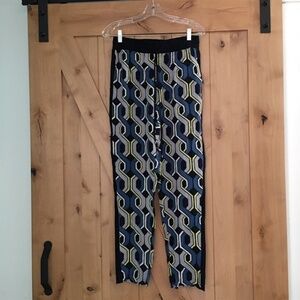 Trina Turk Mariane silk drawstring elastic waist pants. Size S. Size/care tag cut out. Pants have front pockets. Laying flat, waist measurement is 14.5 inches. Rise is 10 inches. Inseam is 31.5 inches. All measurements are approximate.