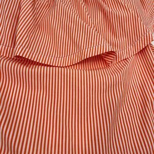Trina Turk Mayreau one shoulder top. Orange and white striped, ruffled. Hidden side zipper. Cute top.