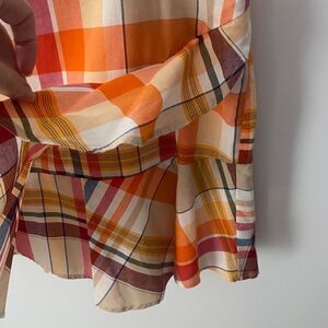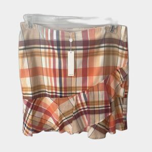 TRINA TURK NWT Madras Plaid Ruffle Wrap Mini Skirt Womens 10 Preppy Academia