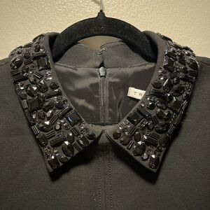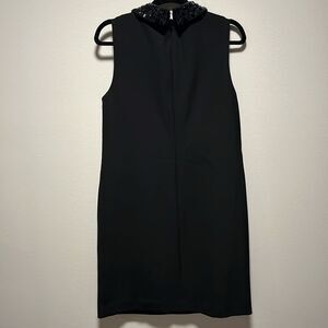 TRINA TURK (NWT) Marta Embellished Collar Crepe Black Mini Shift Dress, Size 6