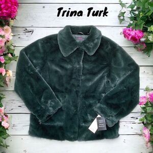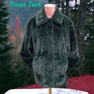 TRINA TURK NWT WOMENS SOFT FAUX FUR COAT JACKET HUNTER GREEN SMALL