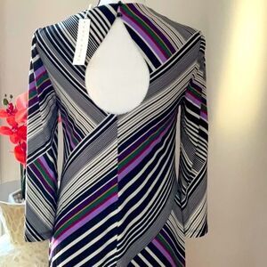 TRINA TURK NWT MULTI COLORED STRIPED SHIFT DRESS KEY HOLE DETAIL ON BACK SMALL
