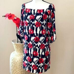 TRINA TURK NWT OFF THE SHOULDER PINK EMBROIDERY FLORAL SHIFT DRESS NAVY BELL SM