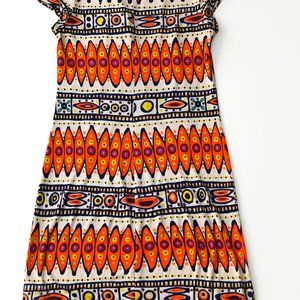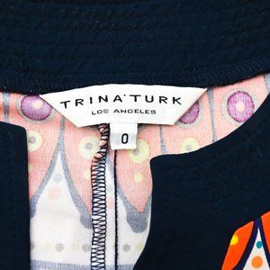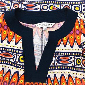 TRINA TURK Navy & Orange Women's Modern Tribal Cricket 100% Silk Dress Size 0