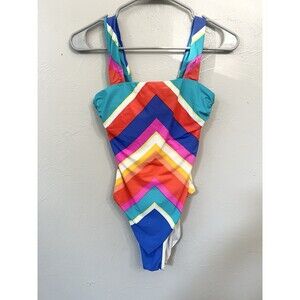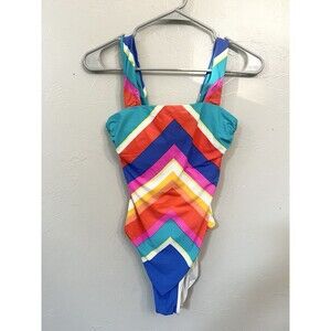 TRINA TURK ONE PIECE SWIMSUIT ANTHROPOLOGIE RAINBOW COLORS Small 4 Chevron $148