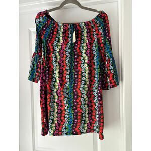 TRINA TURK Off Shoulder Flower Power Bell Sleeve Mini Dress Size Small NWT