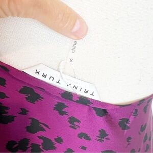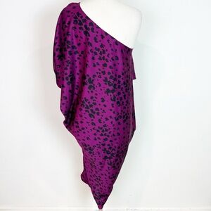 TRINA TURK PURPLE BLACK ANIMAL PATTERN ONE SHOULDER DRESS WOMENS SMALL