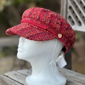 Tags: Trina Turk, newsboy hat, pink tweed, trendy accessories, new with tags, stylish hat