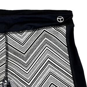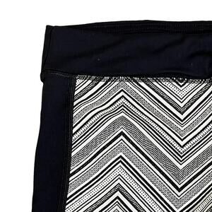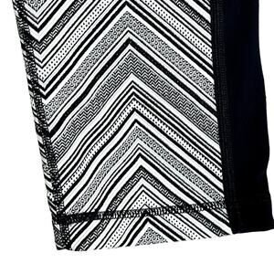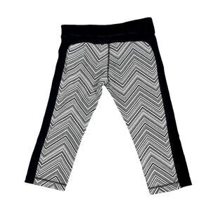 TRINA TURK RECREATION CROP LEGGINGS SIZE L. Black with Black and White Chevron Pattern