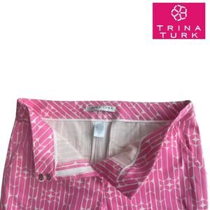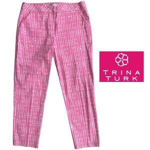 TRINA TURK REGULAR FIT MOSS 2 PANT Cara Cara Herringbone Cotton Candy Pink 8 EUC