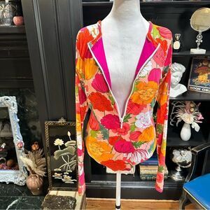 TRINA TURK SUNNY BLOOM LONG SLEEVE SWIMSUIT PADDLE SUIT RASH GUARD size XL