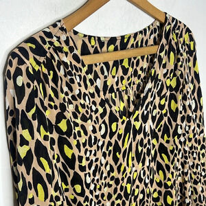 TRINA TURK Silk Blend Leopard Animal Print V Neck Popover Long Sleeve Blouse