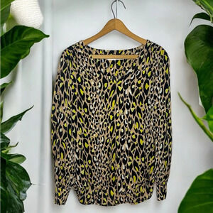 TRINA TURK • Silk Blend Leopard Animal Print V Neck Popover Long Sleeve Blouse