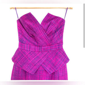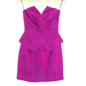 TRINA TURK|| Silk FUCHSIA STRAPLESS TWEED Mini DRESS, Holiday dress!