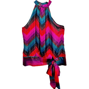 TRINA TURK Silk-Blend Champagne Shimmer Striped Tie-Front Halter Top NWT Small