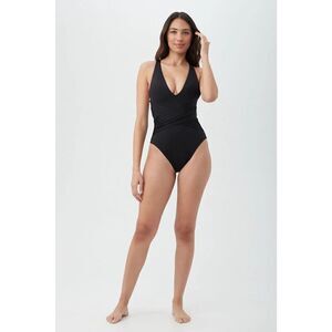 TRINA TURK Size 12 Getaway Solid Wrap Front One Piece Black Swimsuit Contour. Condition is Pre-owned.