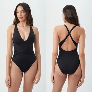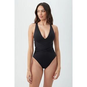 TRINA TURK Size 12 Getaway Solid Wrap Front One Piece Black Swimsuit Contour
