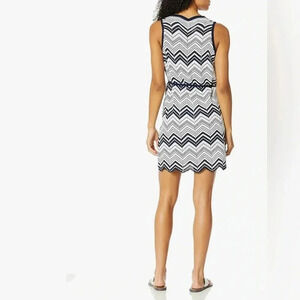 Trina Turk Women's Sleeveless Tie Front Wrap Tunic / white and navy knit / sleeveless / mini dress length / can be a swim cover up or dress