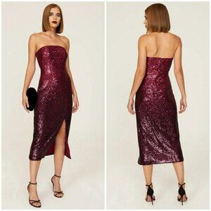 💕TRINA TURK💕 Stella Strapless Sheath Dress Festive Fuchsia Plum Sequin 10 NWT
